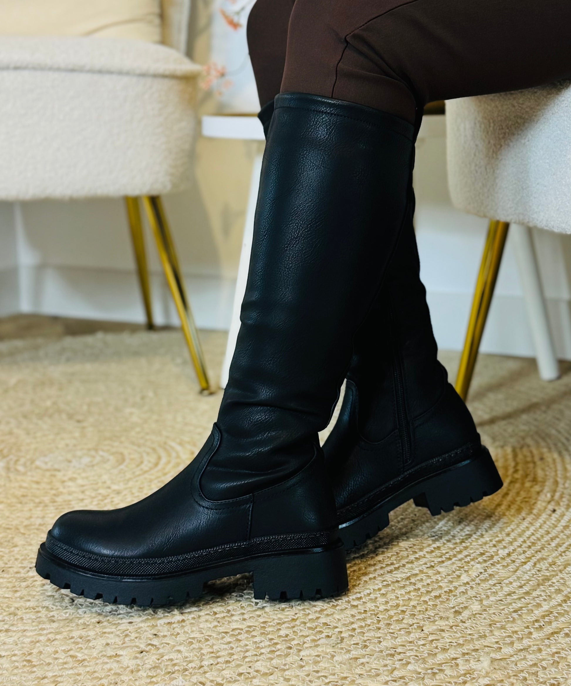 Op zoek naar een statement piece voor je garderobe? Ontdek onze lange, stoere laarzen in de tijdloze kleur zwart. Deze laarzen combineren moeiteloos stijl met comfort en voegen een gedurfde touch toe aan elke outfit. Of je nu een casual look wilt opvrolijken of een avondoutfit een edgy randje wilt geven, deze laarzen zijn de perfecte keuze.