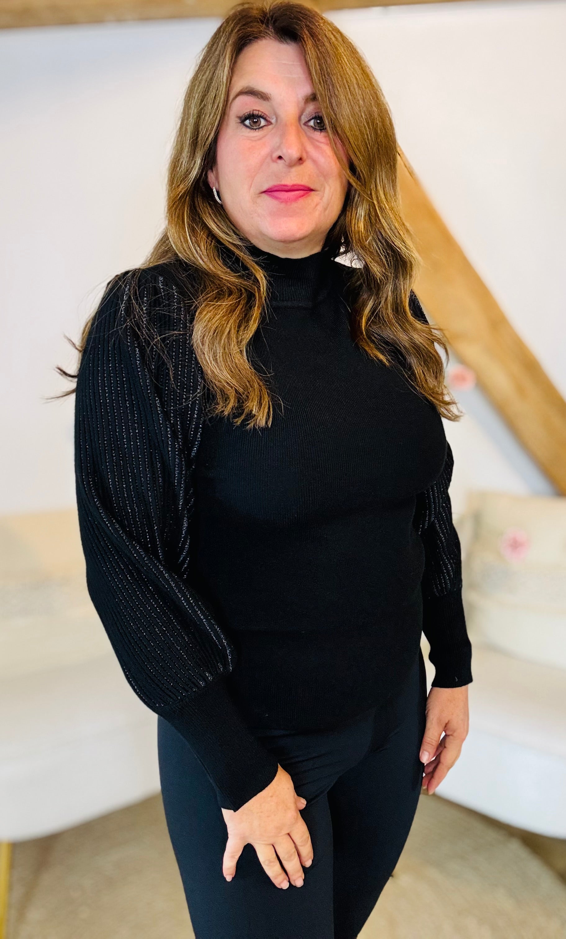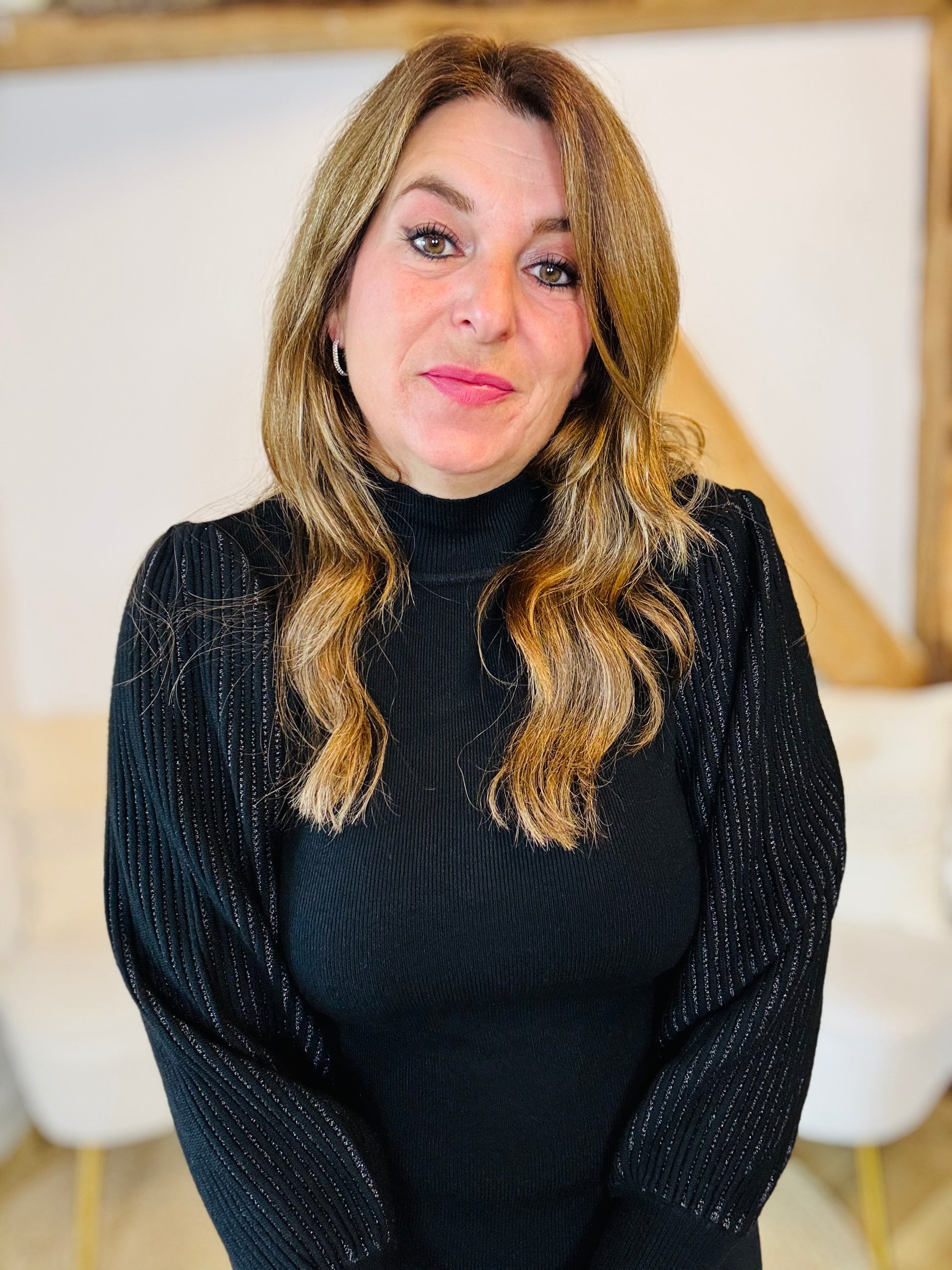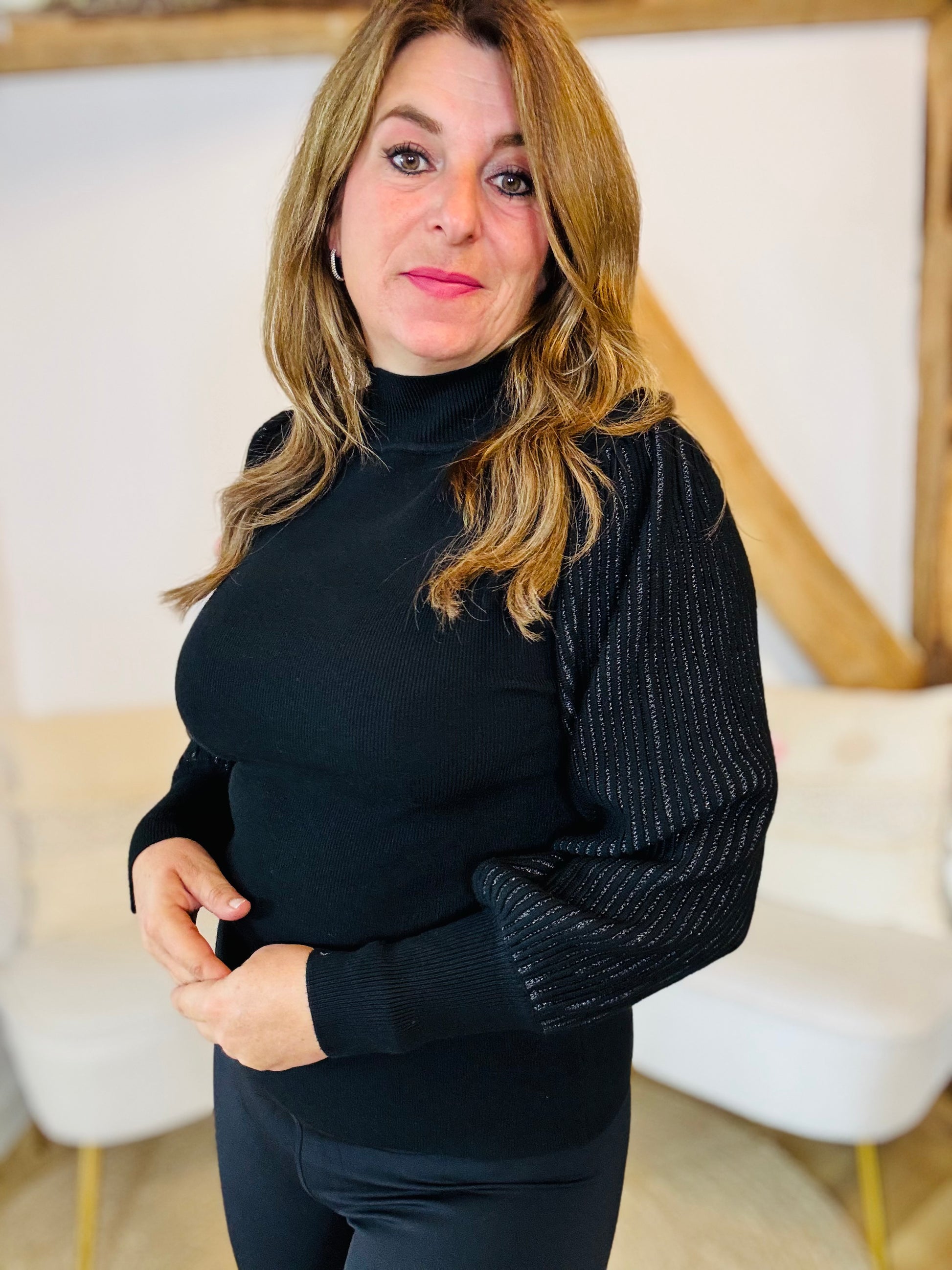 Een zwarte luxe top met glitter mouwen is een veelzijdig kledingstuk dat zowel elegant als speels is. Deze top combineert klassieke verfijning met een vleugje sprankeling, perfect voor zowel formele als informele gelegenheden.